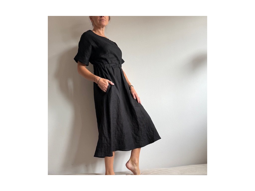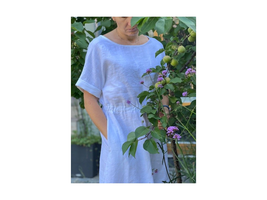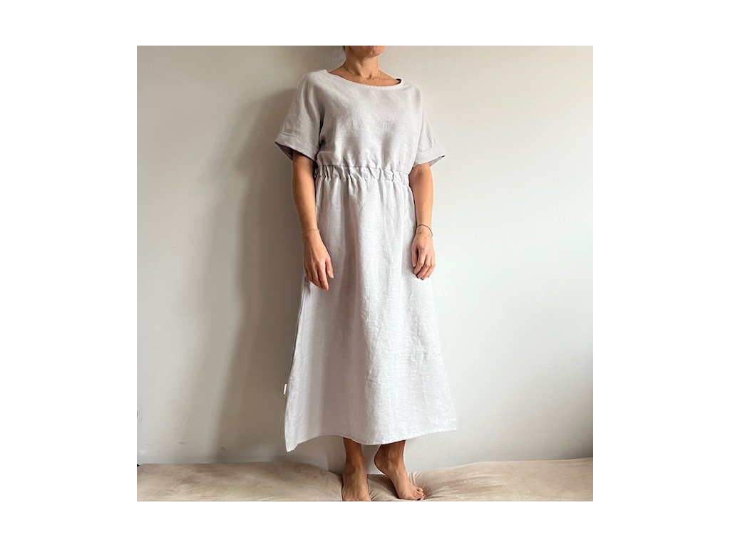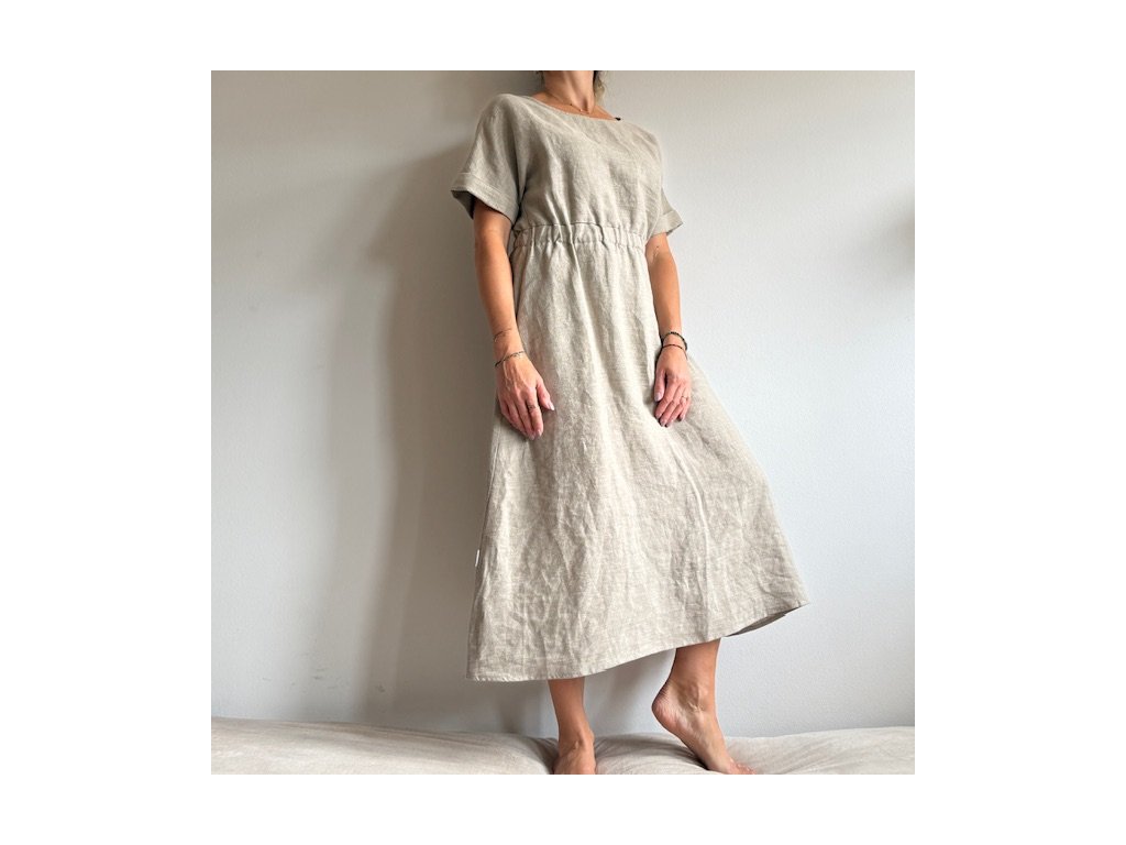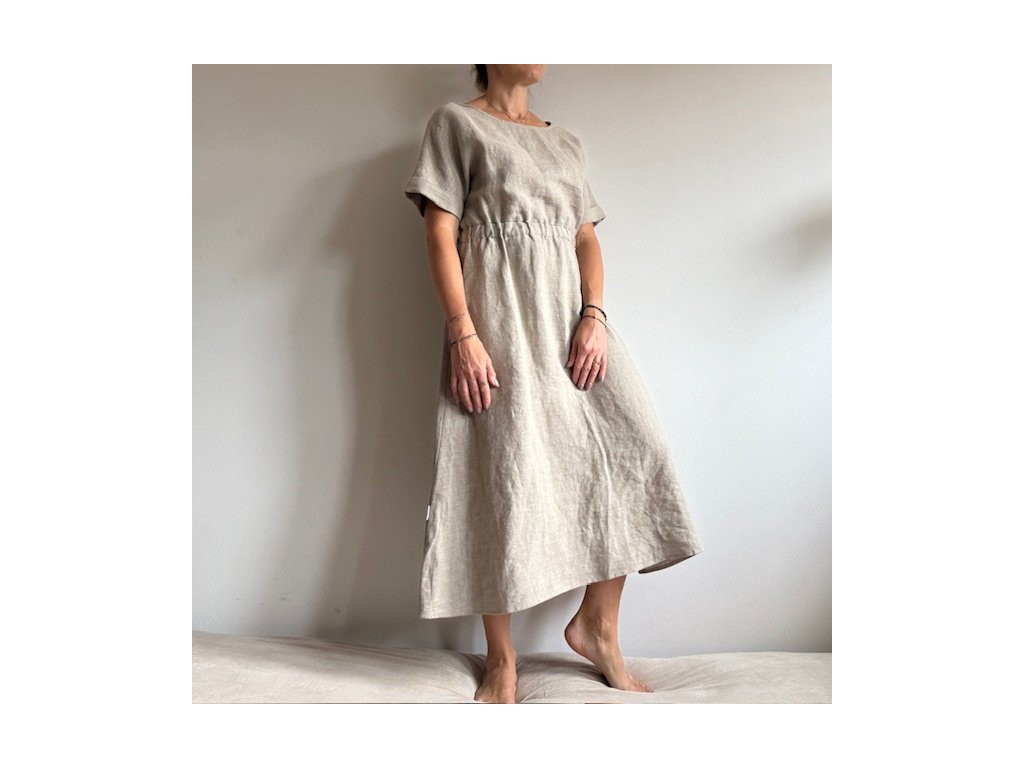 Lněné šaty volného střihu z přírodního lnu jsou nadčasovým a jedinečným kouskem, který by si zasloužila každá z nás. Díky své jednoduchosti se hodí pro mnoho příležitostí. Len v parných dnech přirozeně chladí a zimě zahřeje. Šaty mají decentní kulatý výstřih a široké kratší spadlé rukávy, díky kterým se budete cítit komfortně i ve vyšších teplotách. Střih kopíruje tvar písmene "A", v pase na volnou gumu a končí přibližně pod koleny. Šaty jsou vhodné i k vrstvení. Noste je s pohodlnými sandálky, stylovými teniskami – na slavnostnější akce doplňte botkami na podpatku. Báječně vyniknou s oversize sakem v pánském stylu, džínovou bundou nebo lehkým kardiganem. Pokud preferujete ležérní styl, doporučujeme kombinovat s lněným pláštěm Aesthetic.