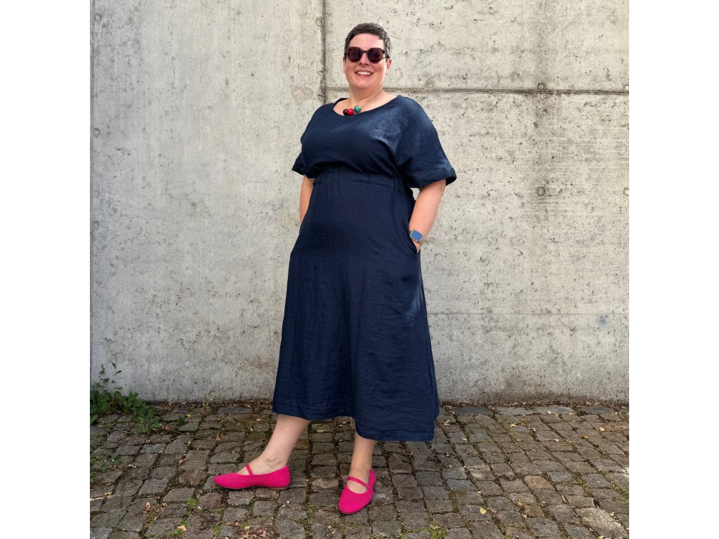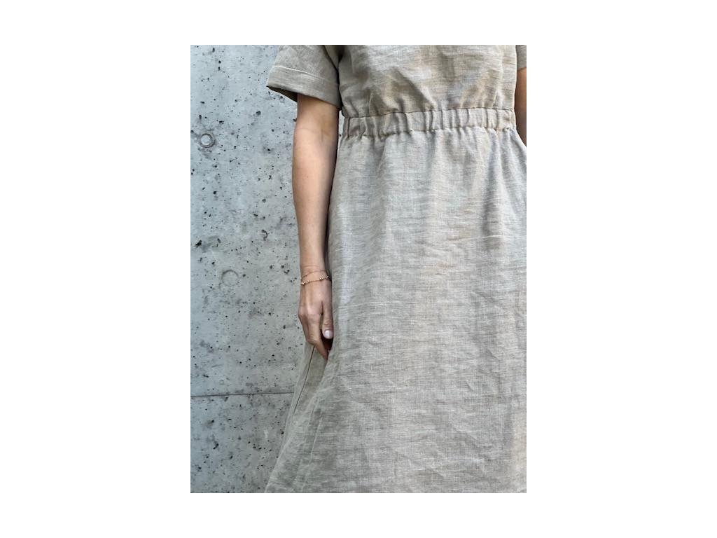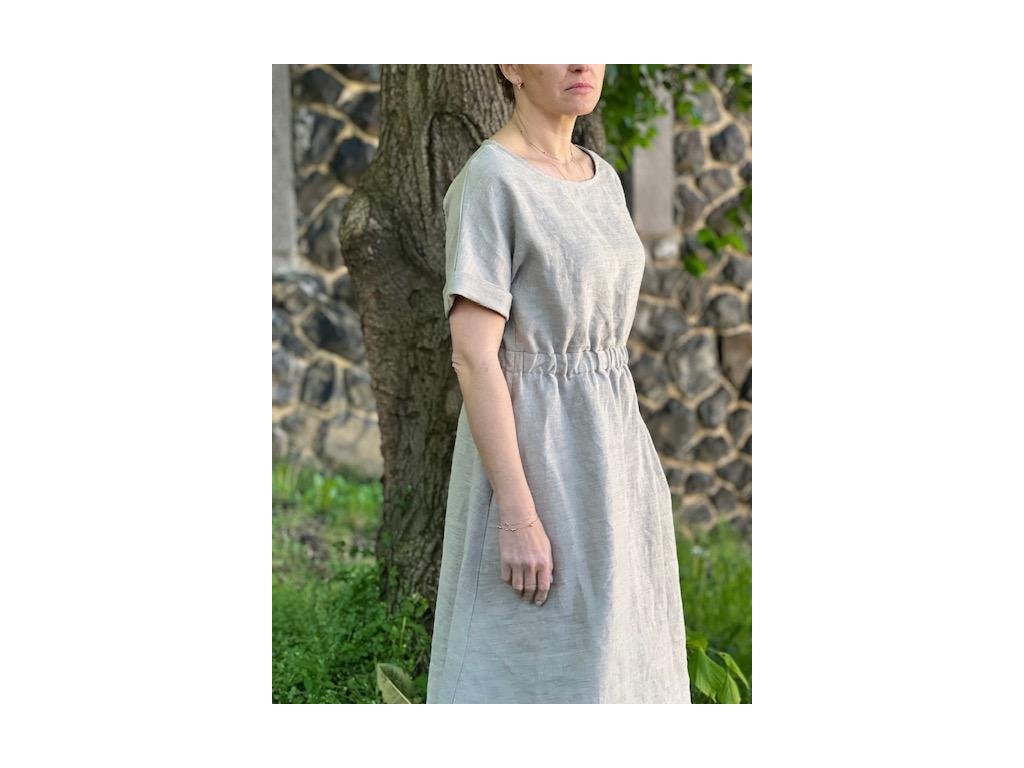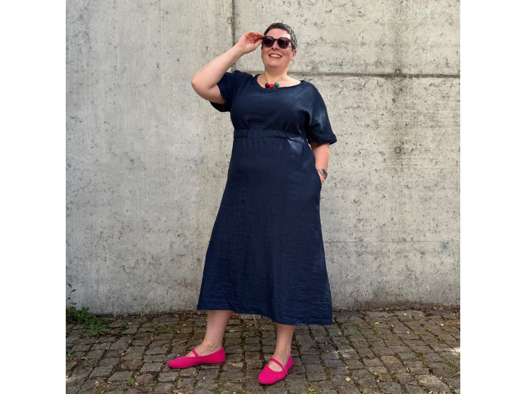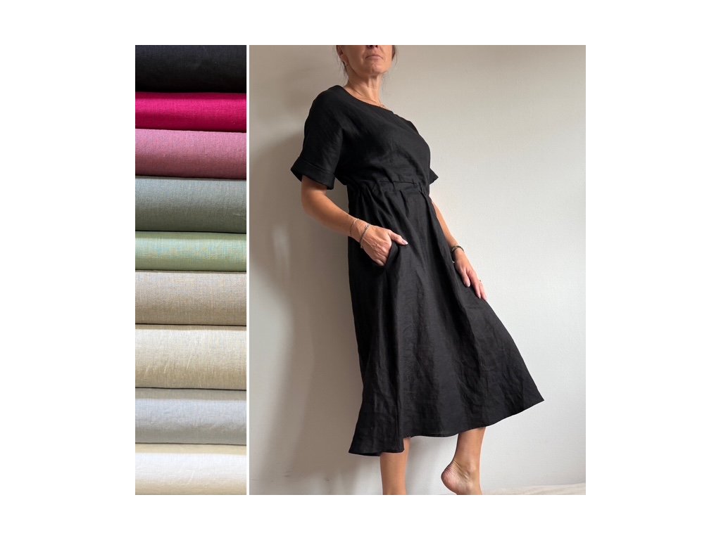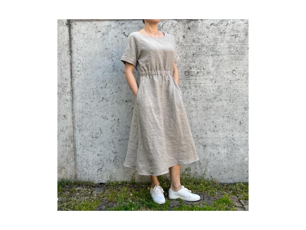 Lněné šaty volného střihu z přírodního lnu jsou nadčasovým a jedinečným kouskem, který by si zasloužila každá z nás. Díky své jednoduchosti se hodí pro mnoho příležitostí. Len v parných dnech přirozeně chladí a zimě zahřeje. Šaty mají decentní kulatý výstřih a široké kratší spadlé rukávy, díky kterým se budete cítit komfortně i ve vyšších teplotách. Střih kopíruje tvar písmene "A", v pase na volnou gumu a končí přibližně pod koleny. Šaty jsou vhodné i k vrstvení. Noste je s pohodlnými sandálky, stylovými teniskami – na slavnostnější akce doplňte botkami na podpatku. Báječně vyniknou s oversize sakem v pánském stylu, džínovou bundou nebo lehkým kardiganem. Pokud preferujete ležérní styl, doporučujeme kombinovat s lněným pláštěm Aesthetic.