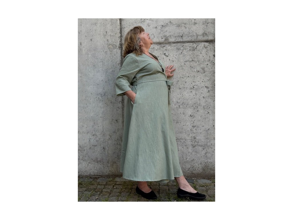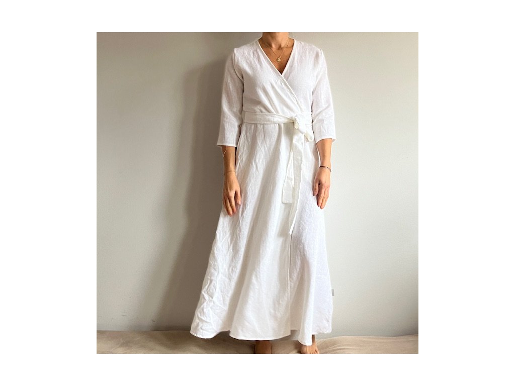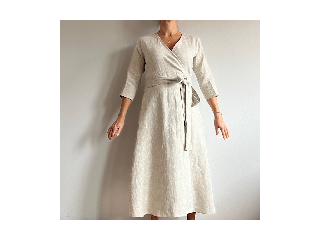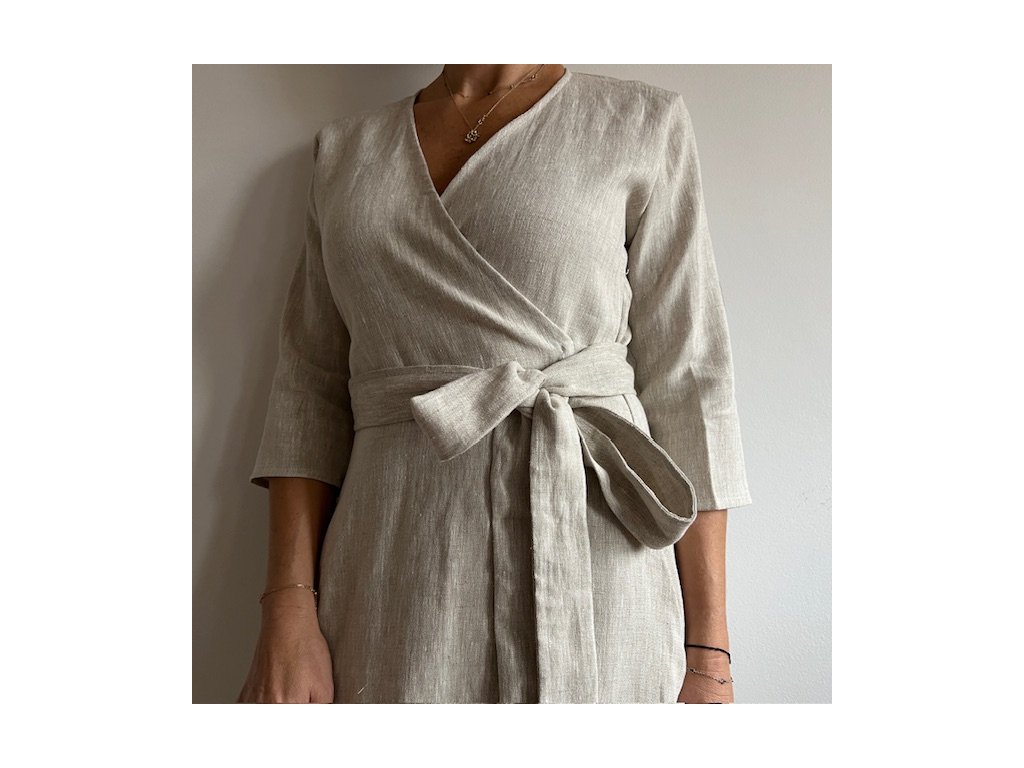 Lněné šaty zavinovacího střihu v elegantní prodloužené délce z přírodního lnu jsou nadčasovým a jedinečným kouskem, který by si zasloužila každá z nás. Díky své jednoduchosti se hodí pro mnoho příležitostí.