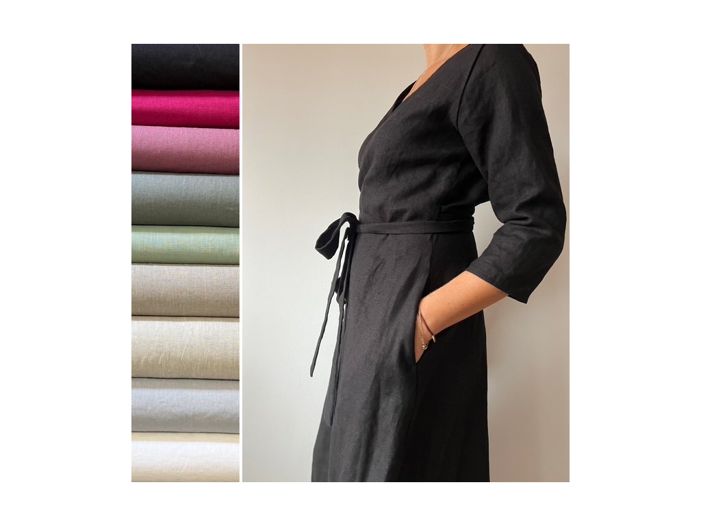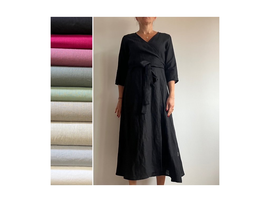 Zavinovací dlouhé lněné šaty s rukávem - 100% len, gramáž 245g/m2 - mix barev