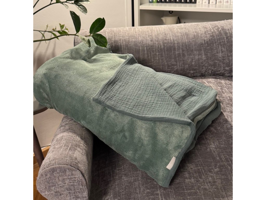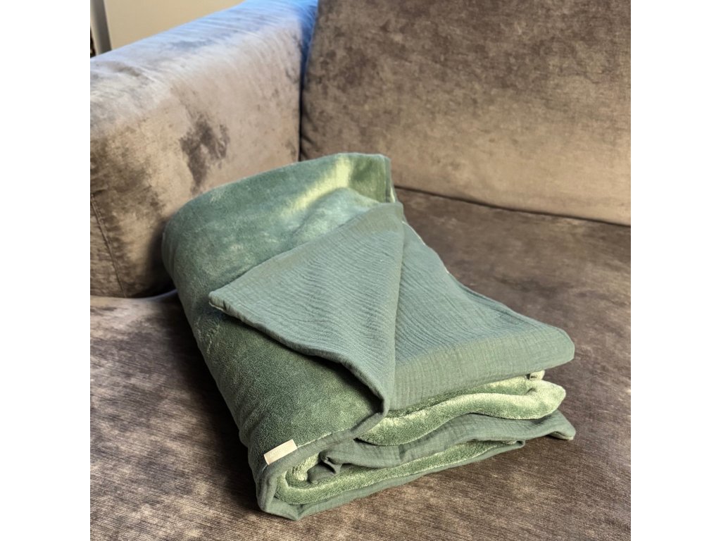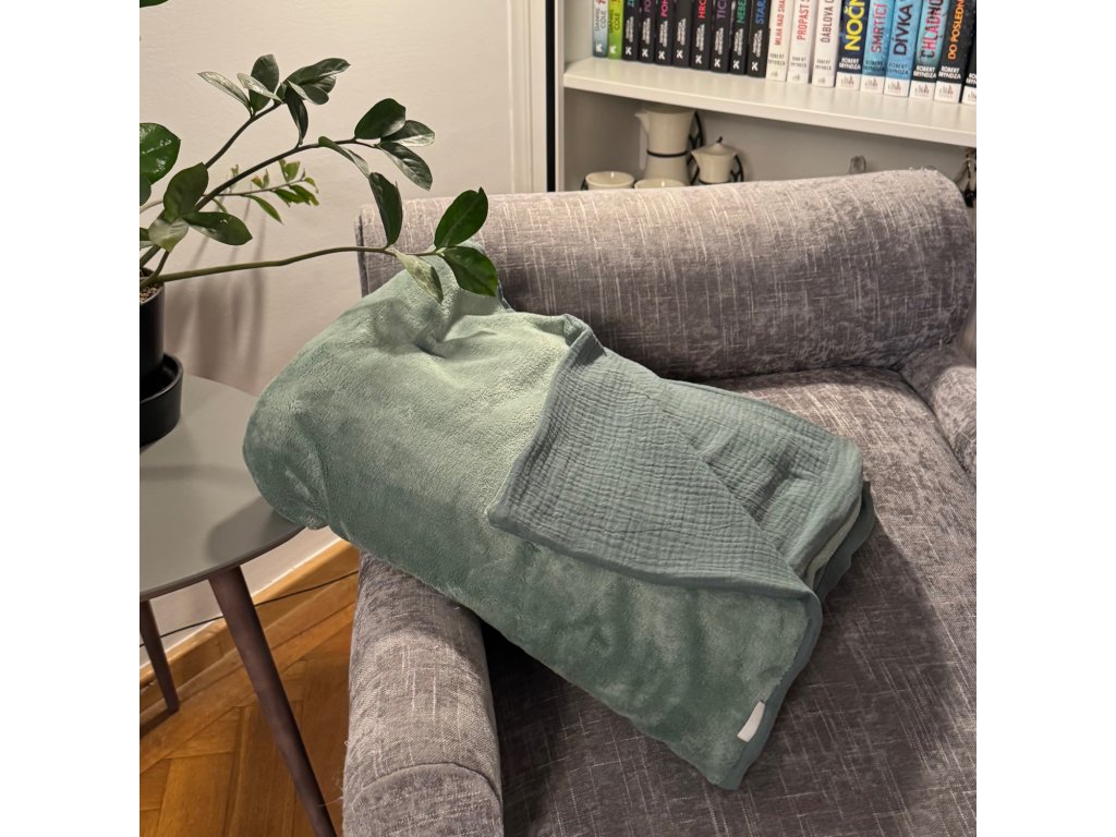 Deka/ přehoz oboustranný mušelín /mikroplyš - Zelená šalvějová