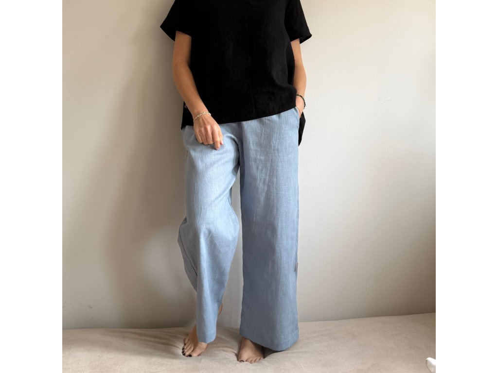 Univerzální lněné kalhoty - Světle modrá