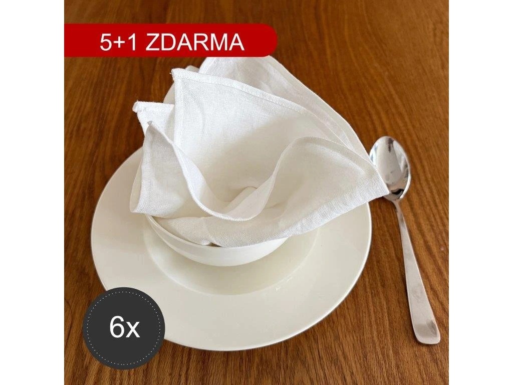 Výhodný SET - Lněné jídelní ubrousky 47x47 cm - Smetanovobílá | 6 ks (5 + 1 zdarma)