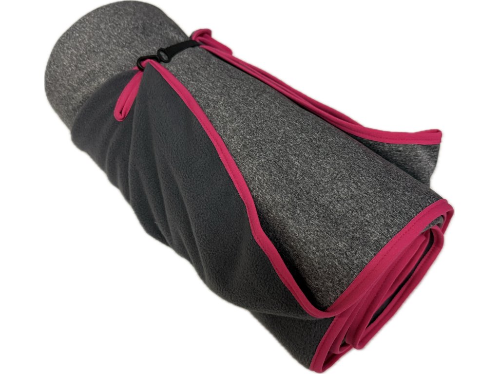 Softshellová pikniková deka - šedá melange s růžovým lemem
