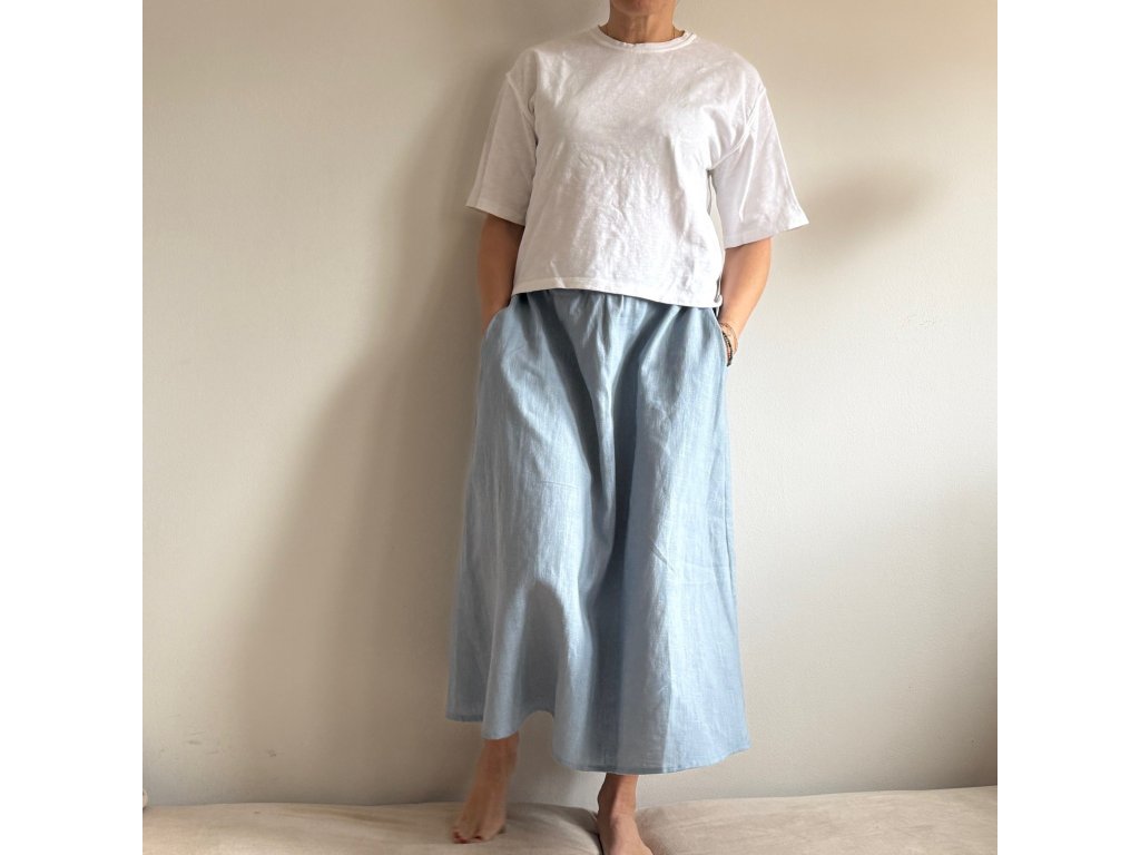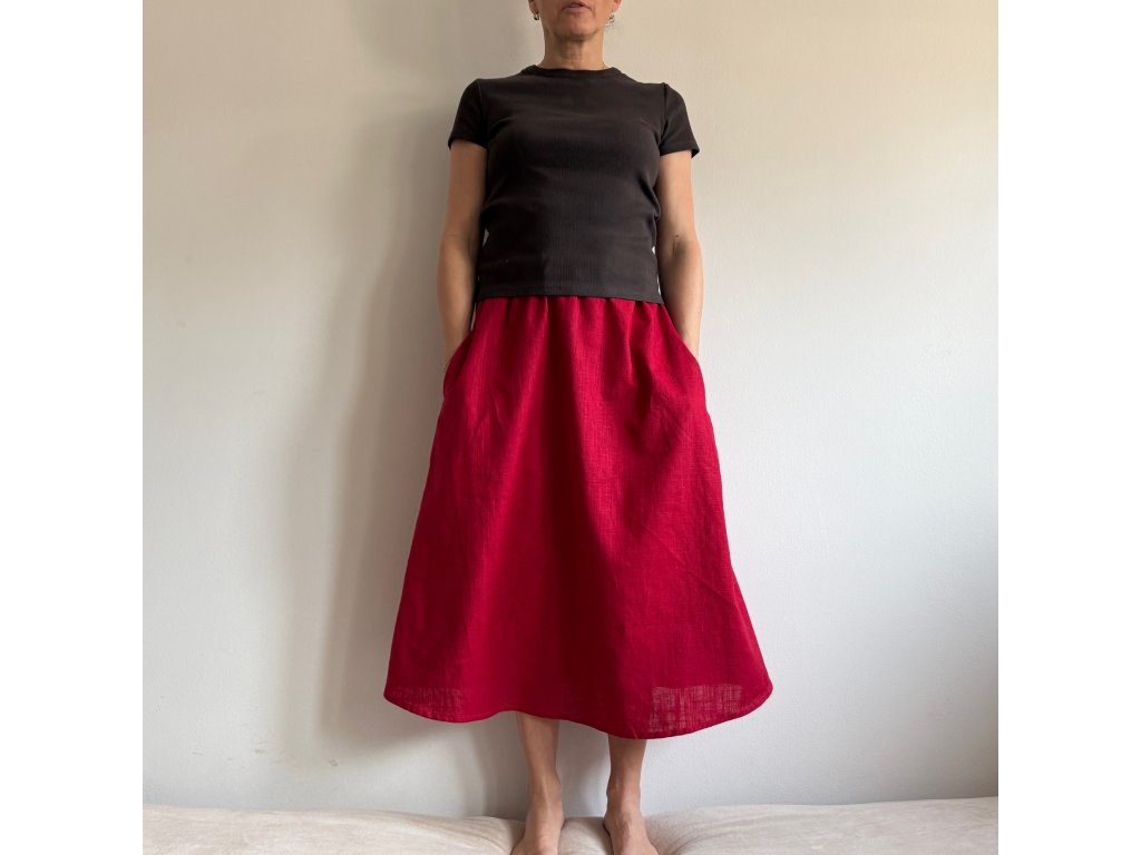 Lněná sukně s kapsami do půli lýtek - 100% len, gramáž 245g/m2 - MIX barev