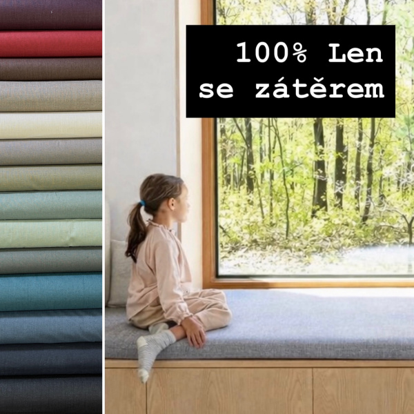 Pro více namáhané výrobky používáme len s akrylátovým zátěrem, který kombinuje přírodní charakter lnu s vyšší odolností.