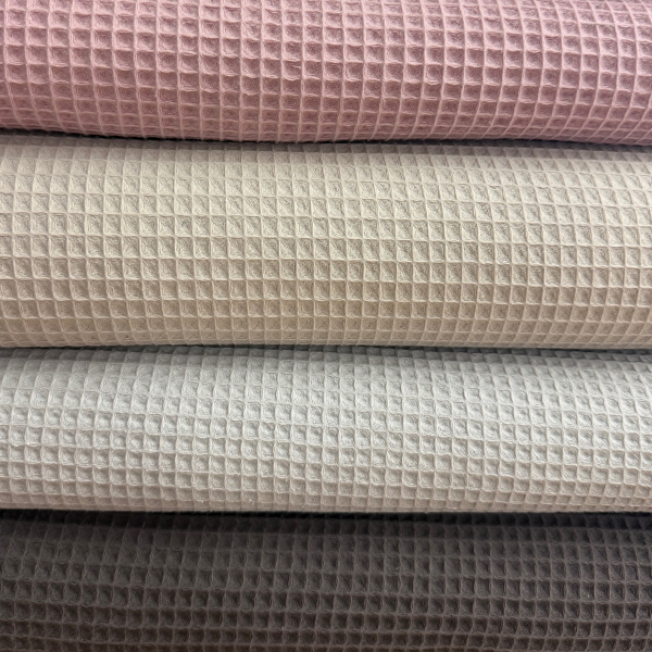Vaflovina je oblíbená pro svou strukturu a praktičnost. Využíváme ji především pro koupelnový textil.